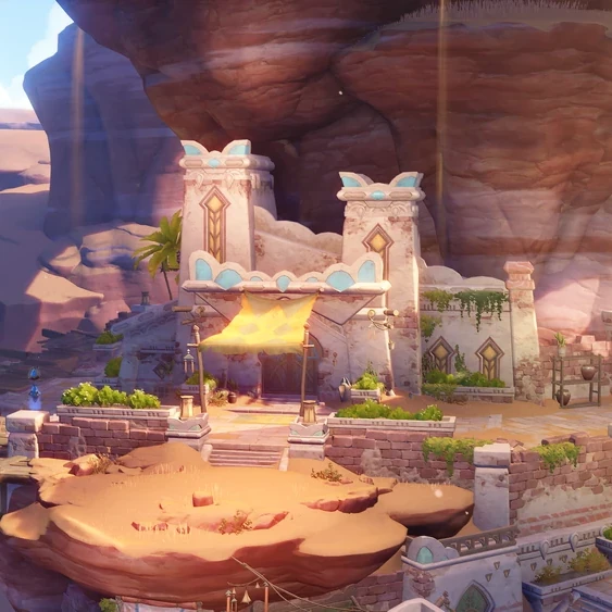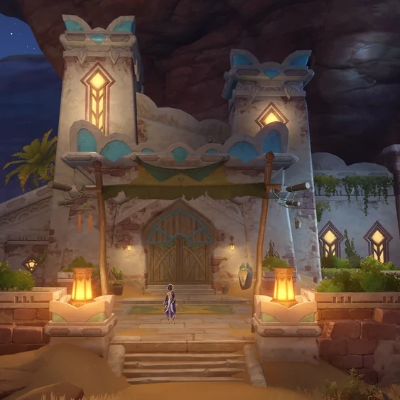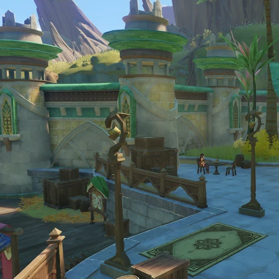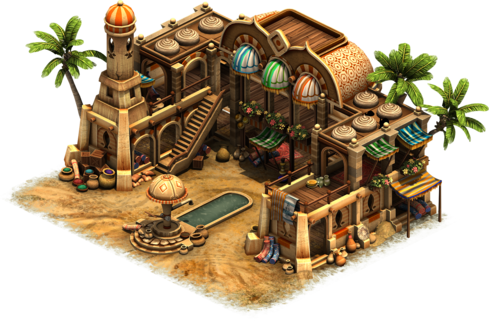 In the middle of the desert, there is a well that renders a small section of land arable and livable-on. An oasis settlement has formed here for those people who enjoy a desert environment.