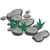 A rocky hill that can be climbed. It has a crystal-clear stream running down it that disappears into the earth at the bottom. Its top affords a beautiful view beyond the walls.
