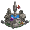 There is a fountain in each corner of the square.