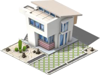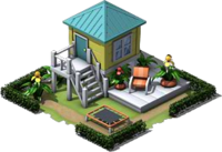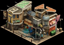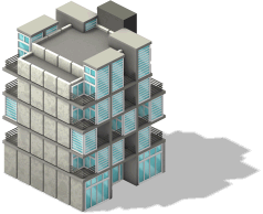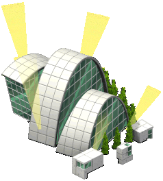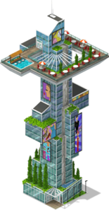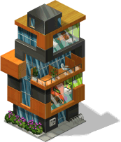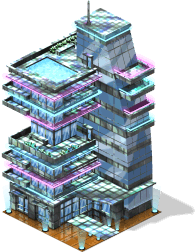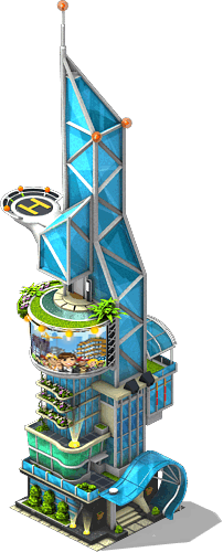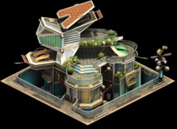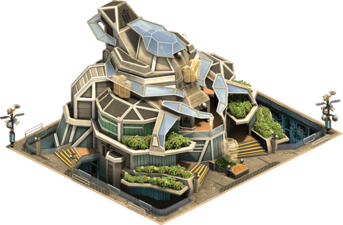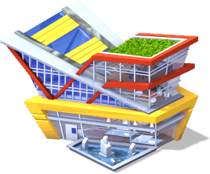 A futuristically designed building. It produces its own power by solar cells on the roof and has facilities for indoor gardens. Free to be claimed |