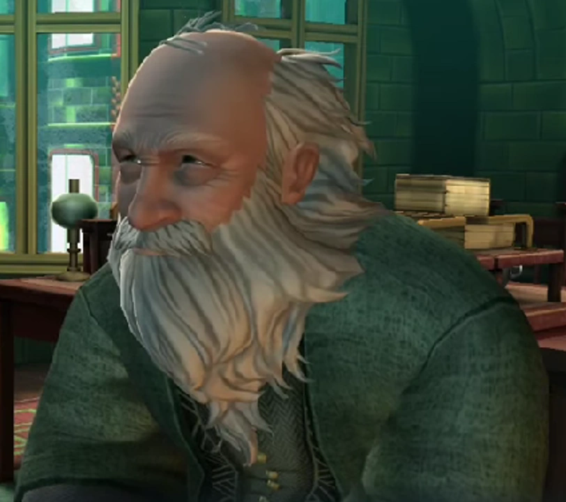 He had mentored Olivia Green when she worked in the Department of Mysteries, and she considered him her favourite mentor. By the 1990–1991 school year, he was a centenarian, and spoke to his dog Herbert Chewsworthy III. During this year, Jacob's sibling and Olivia Green spoke to him in the Ministry All-Purpose Room, asking for information regarding the Crown of Mneme. He told them that many crowns were connected to Hogwarts, such as Ravenclaw's Diadem, and he also mentioned how Carlyle Bimplethorpe would wear a Christmas cracker crown all year round for good luck. He informed them that the Crown of Mneme was immensely powerful, and suggested to avoid it at all costs, as it was linked to Dai Ryusaki.[2]